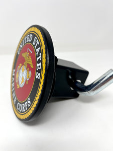 Our trailer hitch covers are made from 6061 aircraft aluminum and coated with a military grade powder coat. The covers are ⅜” thick solid aluminum. Full color logo is UV printed and an automotive clear coat is applied. The receiver is powder coated steel and comes with a zinc plated pin and clip.